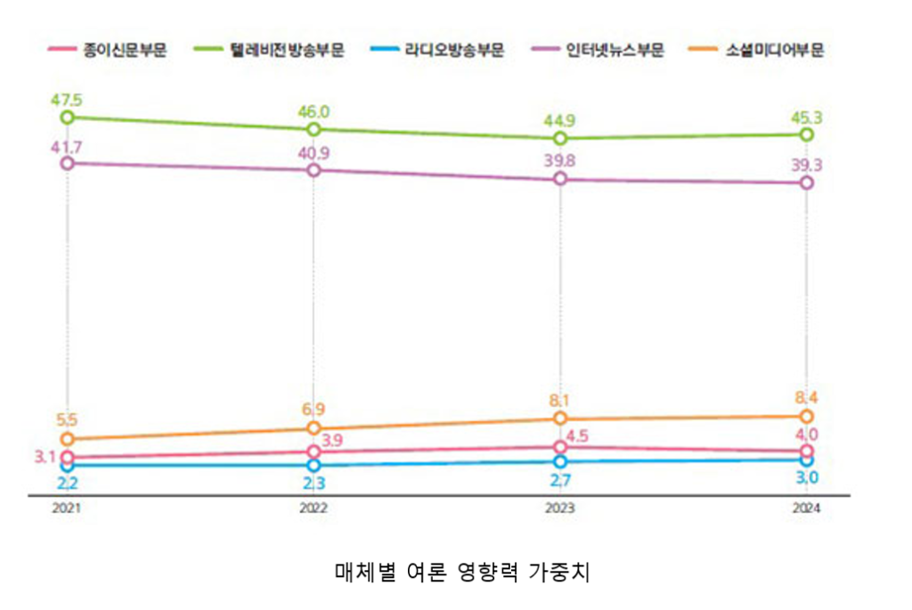 미디어 브리핑 – 9월 1주 2025년 9월 4일 TV방송·인터넷뉴스 합산 점유율 84.6% ‘美시청률 1위’ 폭스뉴스, 反독점법 피소…”경쟁자 배제 압력” 김영일 전 연합통신 사장 별세 시청자미디어재단, ‘2025 팩트체크 세계대회’ 개최 軍, 대북 라디오 방송 ‘자유의 소리’도 15년 만에 중단 포털 뉴스 독점 깨지나…기사 클릭하면 언론사 홈페이지로 직행 이 대통령, 11일에 취임 100일 기자회견…성장전략 밝힌다 5일 한일여성기자포럼…양국 공공·기업·미디어의 성별 다양성 논의 교원, 청소년 시사교양 잡지 ‘위즈키즈’ 통권 300호 발간 KF, 언론분야 8개국 유력인사 방한 초청 이 블로그는 보도자료 배포의 리더인 뉴스와이어(www.newswire.co.kr)가 운영합니다. 뉴스와이어에 가입하면 블로그를 구독할 수 있습니다. 또한 보도자료를 등록해 기업 소식을 빠르게 널리 전파할 수 있습니다. 뉴스와이어 회원 가입 >