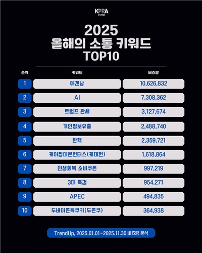 한국PR협회 선정 올해 소통 키워드에 에겐남·AI·트럼프관세